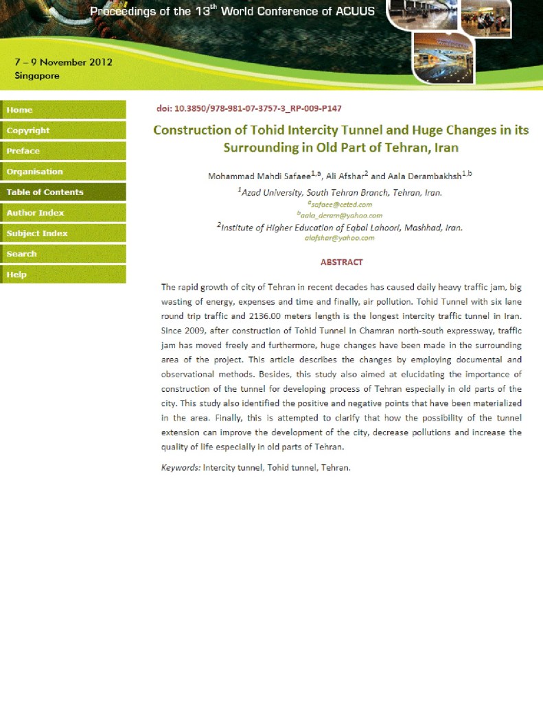 “The Role of People in Renovation and Regeneration of the 2nd Quarter of Old Fabric of Surrounding the Holy Shrine of Imam Reza in Mashhad”, published in Researches and Educational Journal of Tashakkol, Tehran, Iran, 2010 (in Persian)