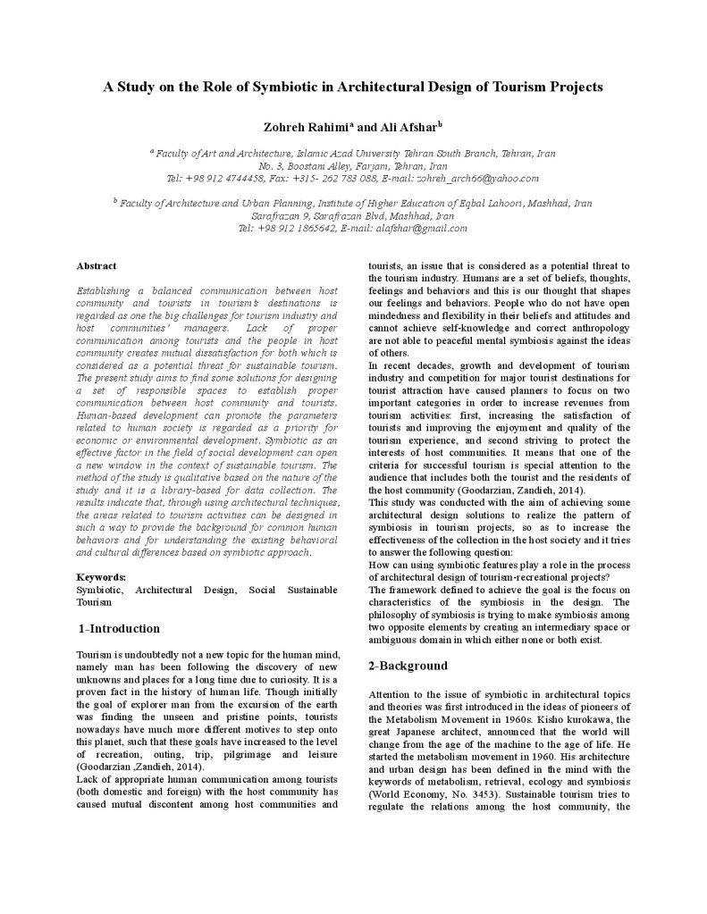 “Different Strategies in Second Home Development and Destruction of local Architectural Values in Kish Island”, published in conference proceedings of 15th Conference of Contemporary Trends in Tourism and Hospitality, Novi Sad, Serbia, 2012.