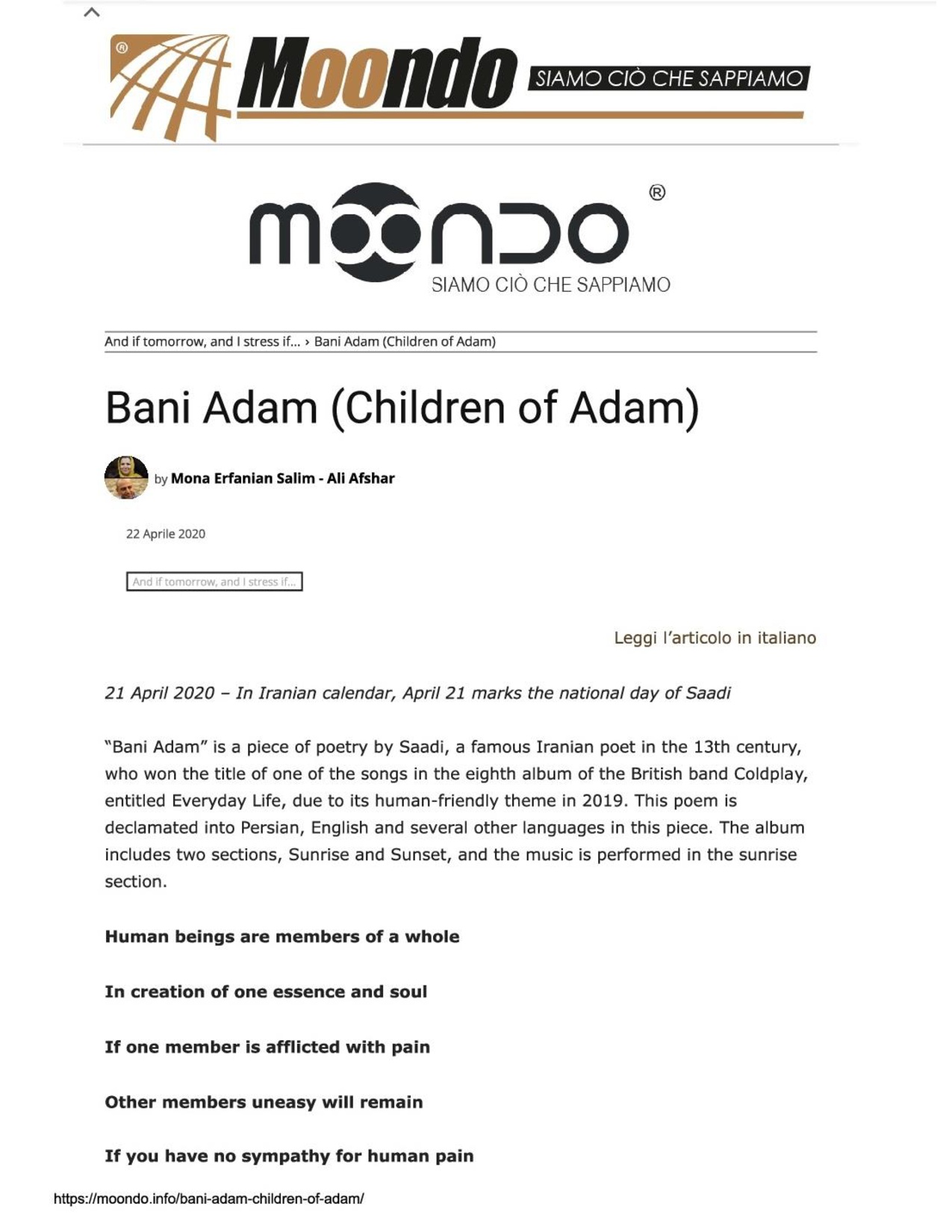 “Bani Adam (Children of Adam)”, Published in Moondo (https://moondo.info/bani-adam-children-of-adam/), Rome, Italy, 2020